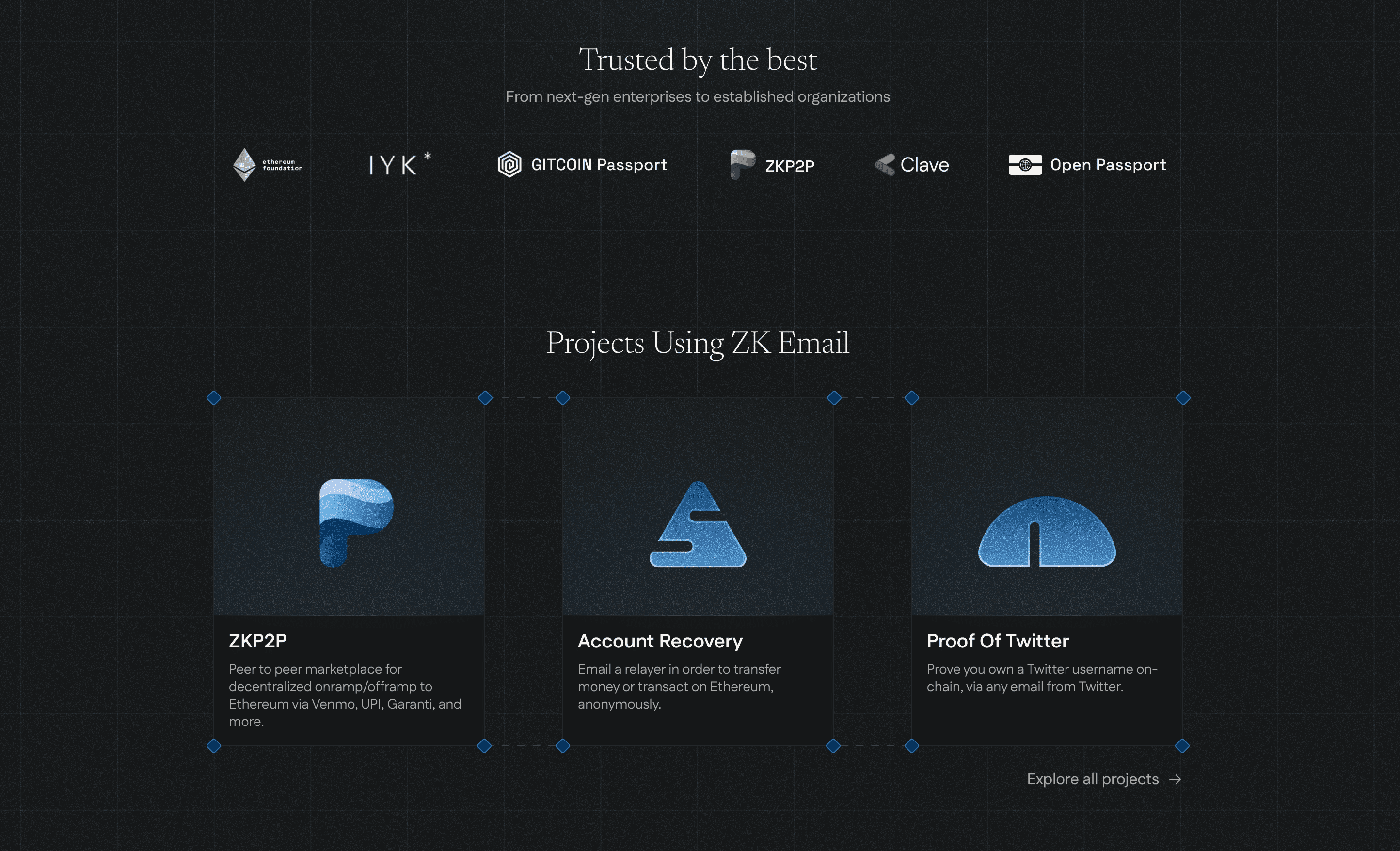 ZK Email is pioneering the future of zero-knowledge research and application. Recognized as one of the Ethereum Foundation's most impactful spinoffs, it has set the standard for what a well-designed ZK product can be.